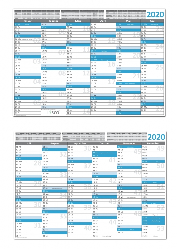 Stabiler Tafelkalkalender 2020 im DIN A5 Format, blau