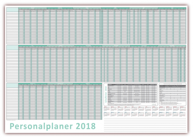 Nass abwischbarer Urlaubsplaner / Personalplaner 2018 für bis zu 22 Mitarbeiter