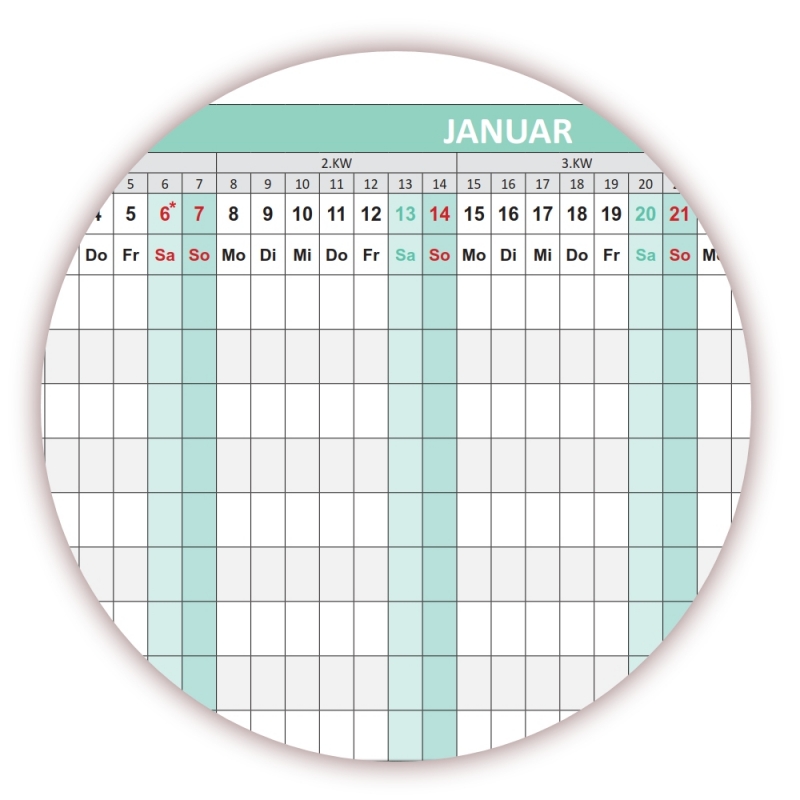 Immerwährender Wandkalender, nass abwischbar im DIN B2 (70 x 50 cm) Format