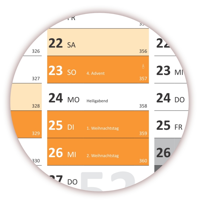 - Angabe der Kalenderwoche und des Jahrestages