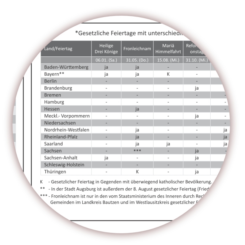 - Feiertage mit unterschiedlichen Regelungen