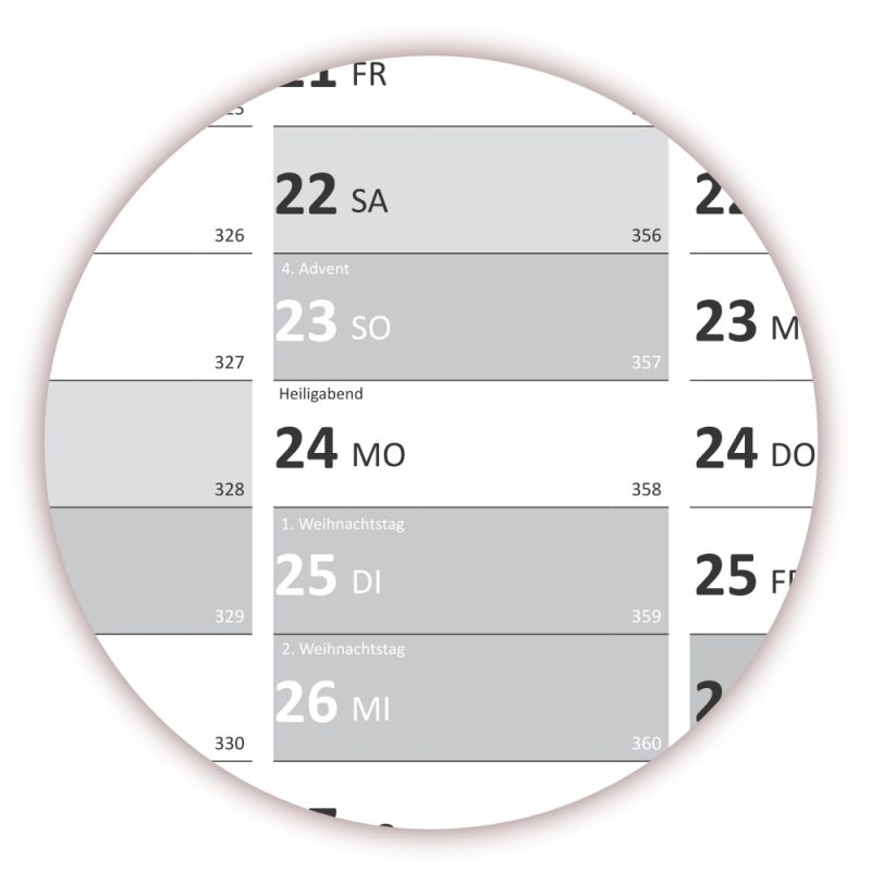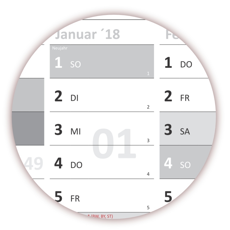 Wandkalender / Wandplaner im großem DIN A1 Format.Gedruckt auf 135 g/m² schwerem und leicht glänzend gestrichenem Bilderdruckpapier.