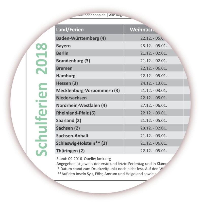 - Komplette Schulferien für alle Bundesländer