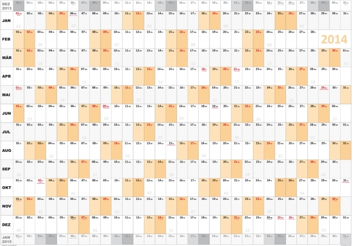 Wandkalender / Wandplaner im großem DIN A1 Format. Gedruckt auf 135 g/m² schwerem und leicht glänzend gestrichenem Bilderdruckpapier.