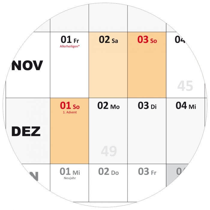 - Angabe der Kalenderwoche und des Jahrestages