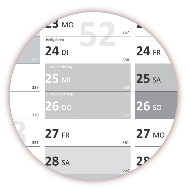 - Angabe der Kalenderwoche und des Jahrestages