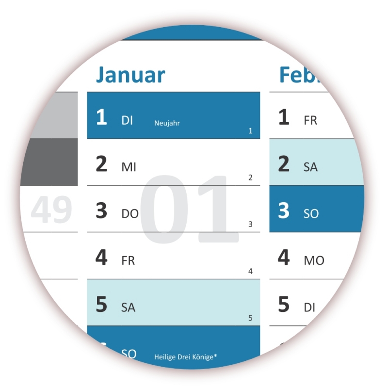 Wandkalender / Wandplaner im großem DIN A0 Format. Gedruckt auf 135 g/m² schwerem und leicht glänzend gestrichenem Bilderdruckpapier.