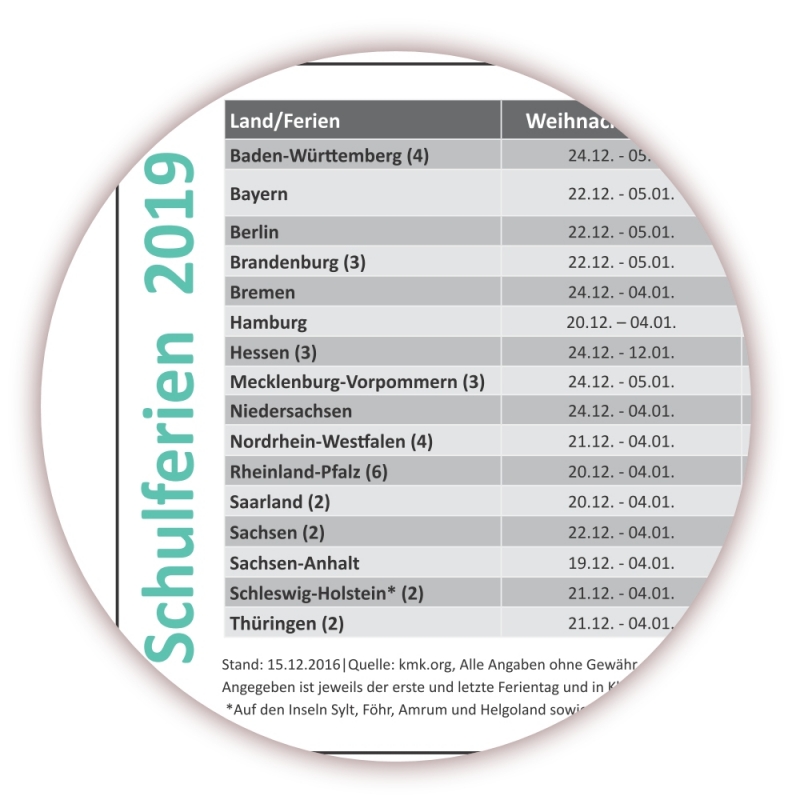 • Schulferien für alle Bundesländer